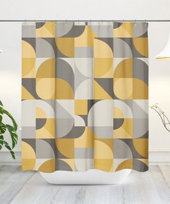 Mid-Century Modern Shower Curtain, Retro Bath Curtain, Minimalist, 197, Abstract, Geometric, Color Block, Contemporary, Bath Decor
