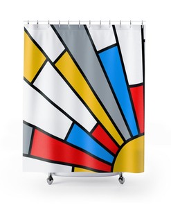 Mondrain Shower Curtain, Mid Century Modern Shower Curtains, Cool New Apartment Decor