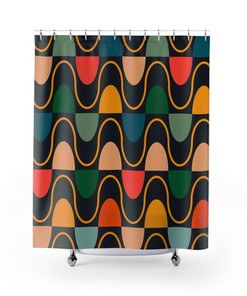 Mid Century Modern Shower Curtain, Fabric Shower Curtain, Geometric Shower Curtain, Bathroom Decor, Bath Curtain