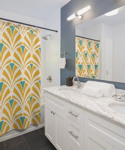 Teal And Yellow Mid Century Art Deco Mcm Home Decor Shower Curtain