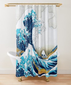 The Great Wave Shower Curtain Vintage Eco-Friendly Waterproof Japanese Decor Great Wave Of Kanagawa Recycled Material