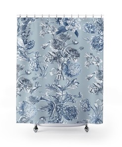 Toile Shower Curtain, Vintage Inspired Bathroom Decor, Floral Botanical Tub Curtain