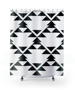 Moroccan Mosaic Shower Curtain, Black and White Geometric Curtain, Abstract Shower Curtain Bathroom Decor