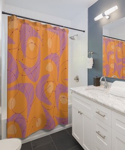 Retro Abstract Shower Curtain Bathroom Decor Design, Modern Art Print, Housewarming Gift, Unique Gift Idea