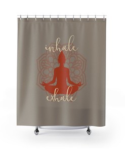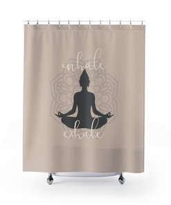 Yoga Shower Curtain, Inhale Exhale Mandala Sukhasana Pose Buddha Silhouette Bath Curtain, Yoga Lover Housewarming Gift