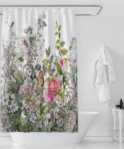 Woodland Deer Shower Curtain, Lavender Floral Bathroom Decor