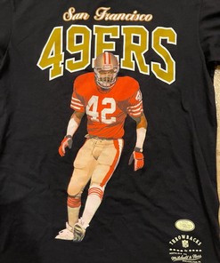Mitchell & Ness NFL Sf 49Ers Ronnie Lott Black Tshirt Pullover Hoodie Crewneck Sweatshirt Reprinted Full Color Full Size Gifts For NFL Fans